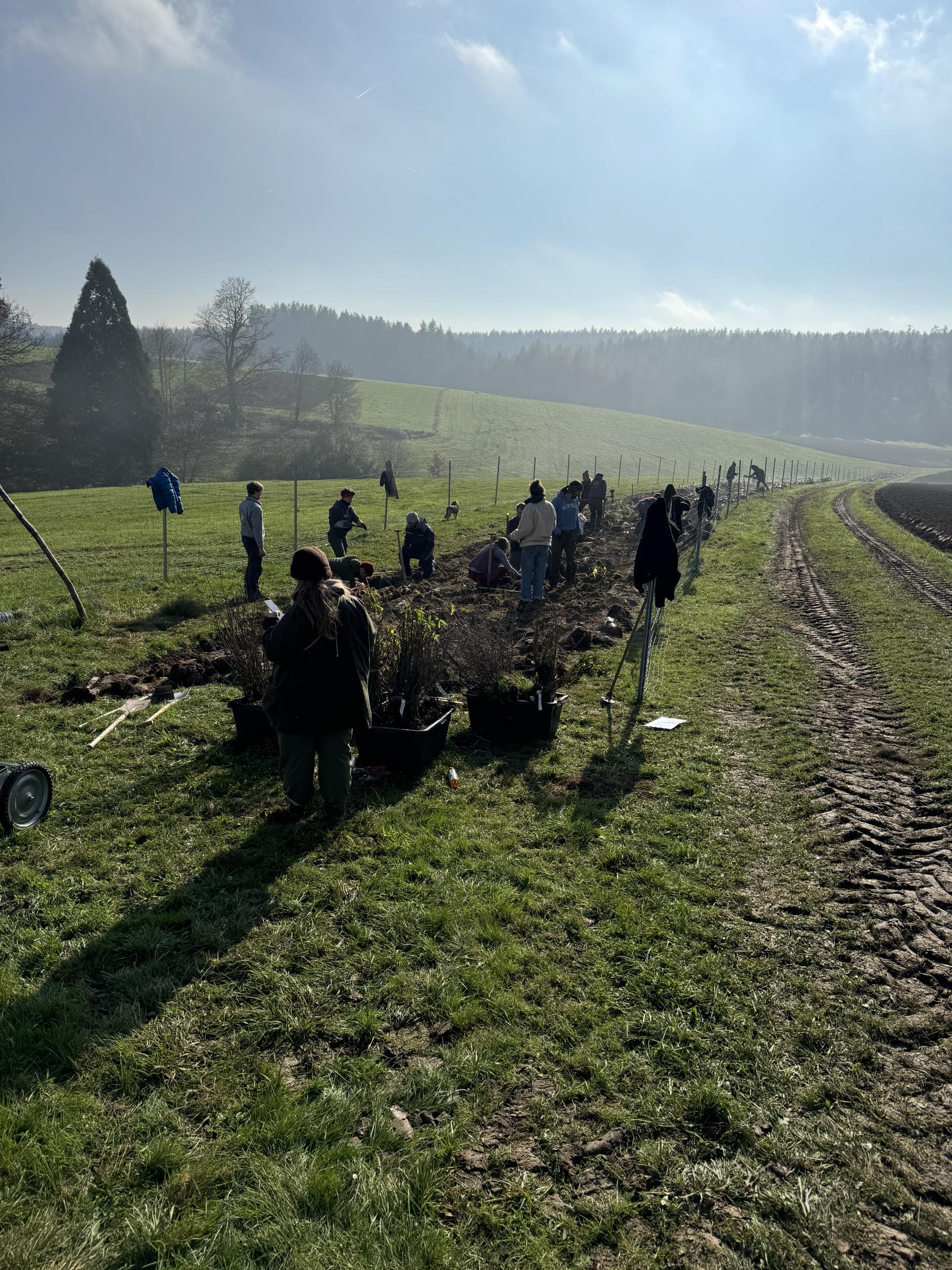 Im Frühjahr 2023 entstand bei einem Visionswochenende mit einem externen Tutor ein Projektplan für die Fläche des Vereins, der nach und nach umgesetzt wird. Im Herbst 2024 wurden auf einer alten Streuobstwiese 15 neue Apfel-, Birnen-, und Zwetschgen-Hochstämme gepflanzt – bewusst zwischen vorhandene, alte Obstbäume, um den Bestand zu erhalten und neu zu beleben. Die Förderung kam über das Programm „Streuobst für alle“. Gewählt wurden robuste, regionale Sorten, die mittlerweile schon gut angewachsen sind.